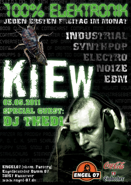 Jeden ersten Freitag im Monat findet im Engel 07 in Hannover die „100% Elektronik“ statt, mit einem bunten Mix aus Electro, Industrial, Noize und anderen elektronischen Styles. Am Freitag, den 3. Juni 2011 (der Tag nach Himmelfahrt) ist dort 13th Monkey-Member Thedi zu Gast und wird ein garantiert wildes 100% elektronisches und krachiges DJ-Set zum besten geben!