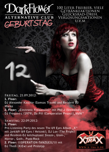 The Dark Flower in Leipzig is having its 12th anniversary and is celebrating that event with a big party on 2 Floors on September 21st and 22nd! Djing there on both days: Thedi (two times – on friday as MdW and on saturday as Thedi)!